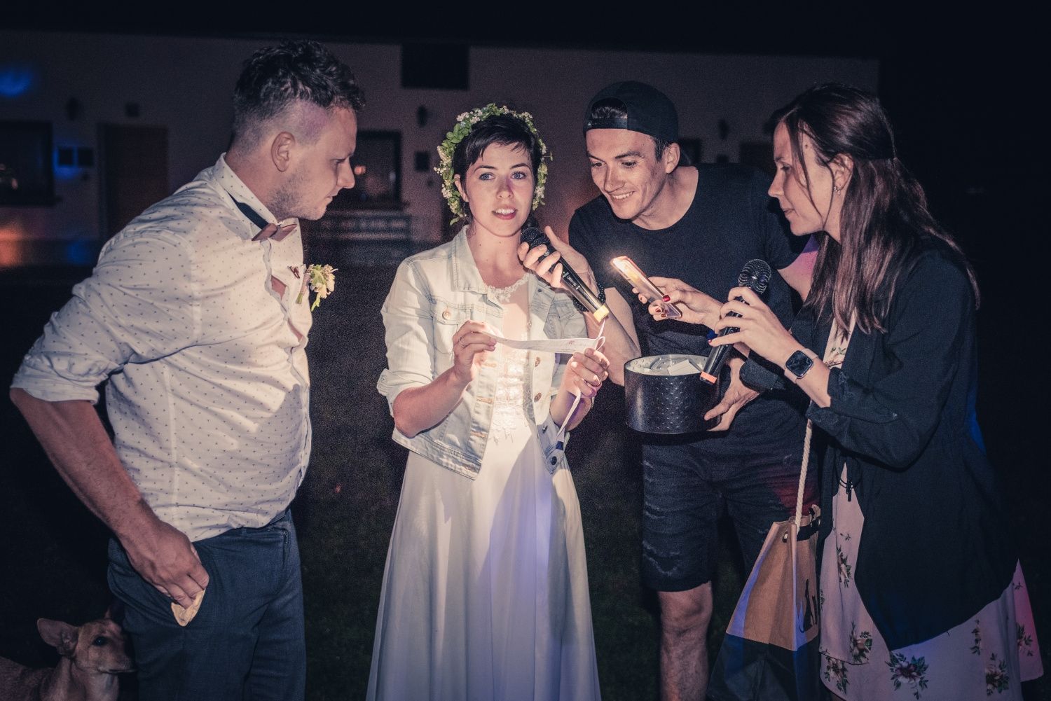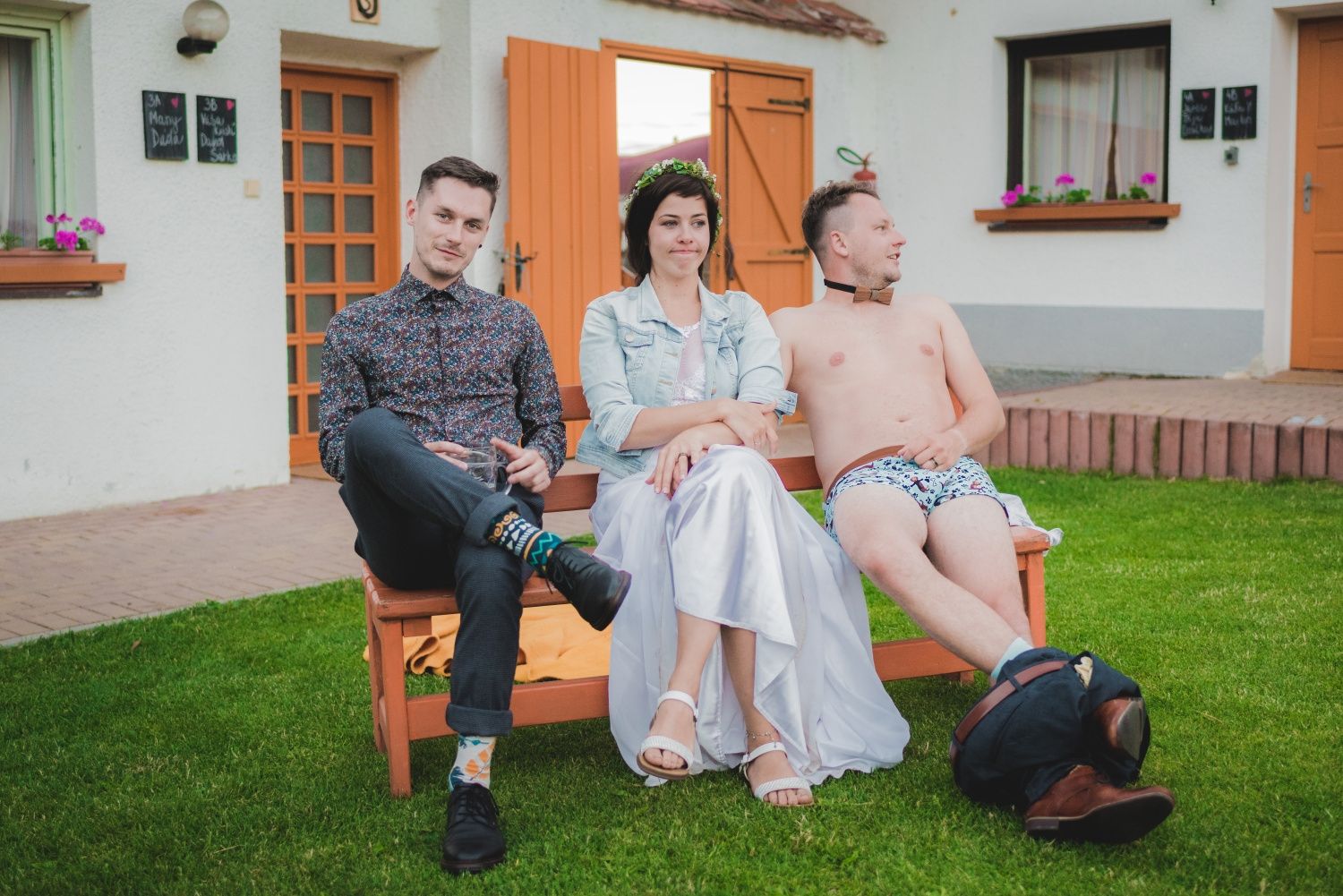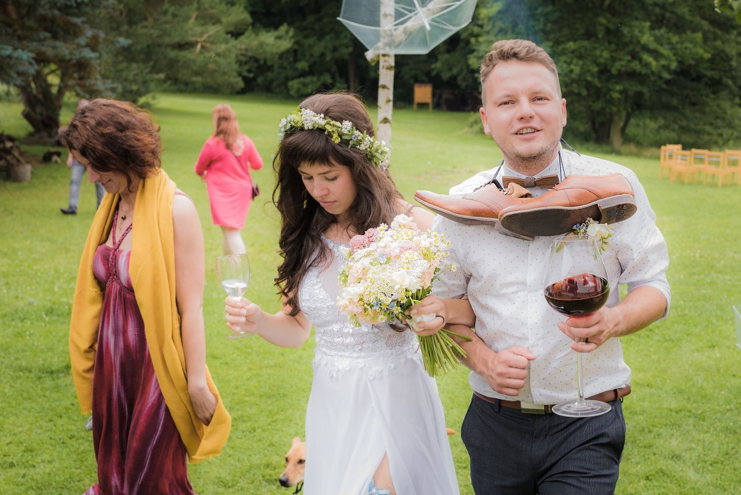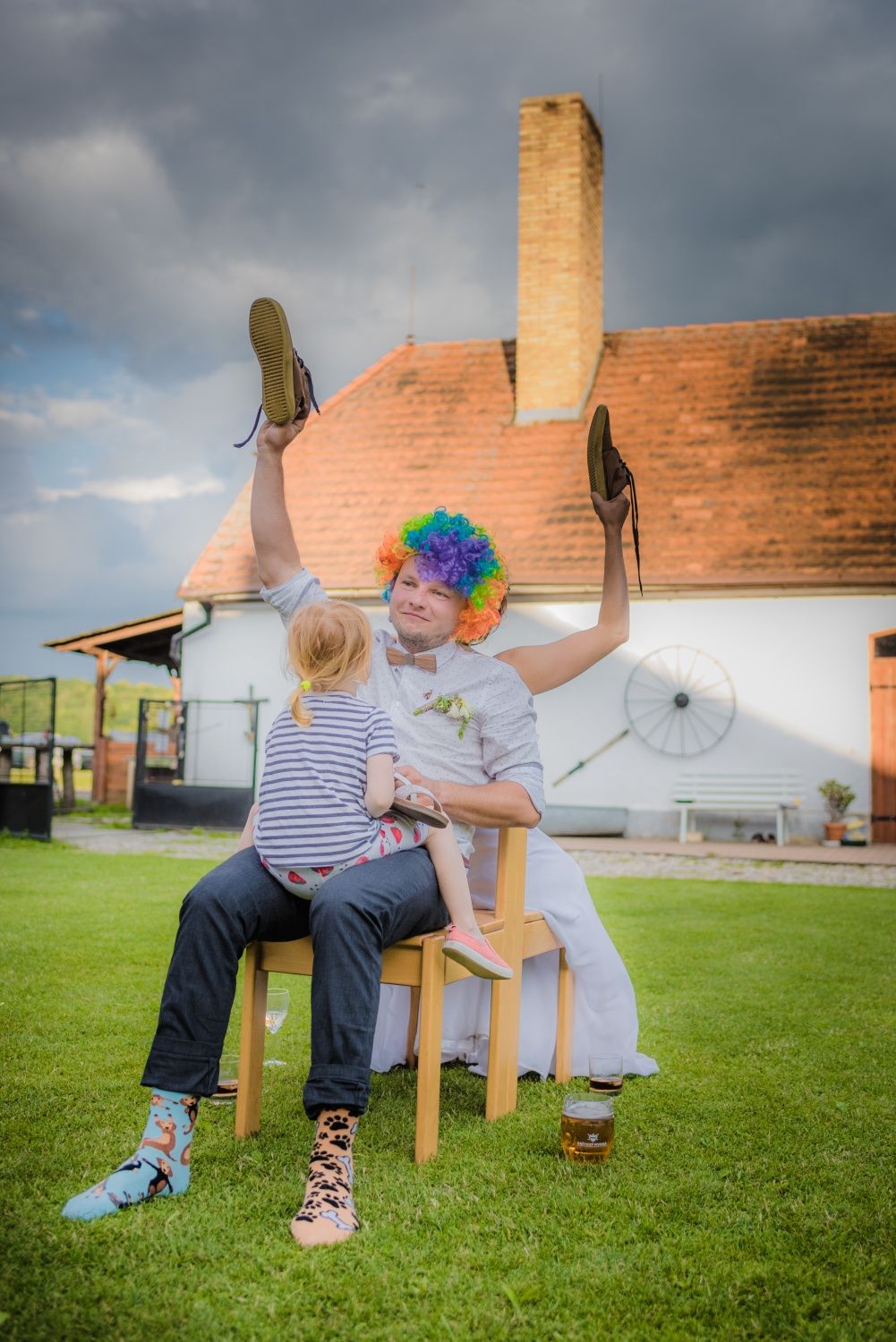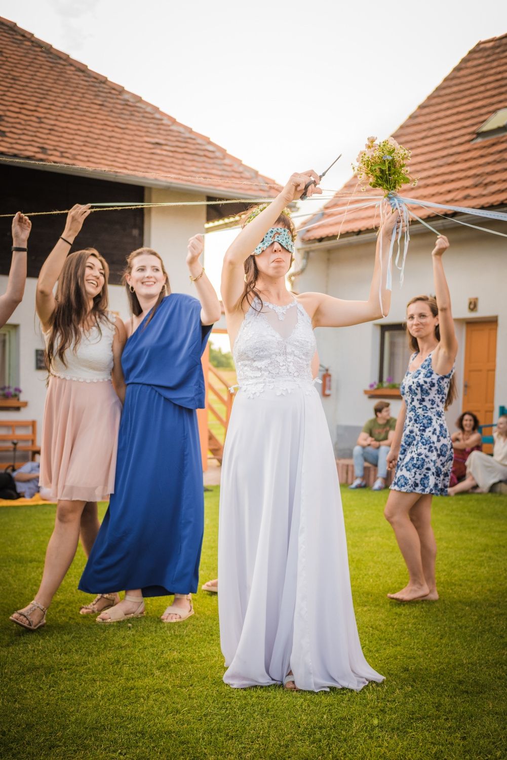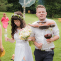 Někdo si potrpí na knedlíčkovou polévku podávanou děravou lžící, někdo musí krájet dort. A někdo se ráno pořádně protáhne, aby stihl civilní obřad, druidský obřad, všechny myslitelné soutěže a obyčeje, noční veselí a ranní koupání v rybníce, které z etických důvodů fotograf zaznamenal, ale nezveřejnil. Aneb „Svatba od kuropění do kuropění“.
