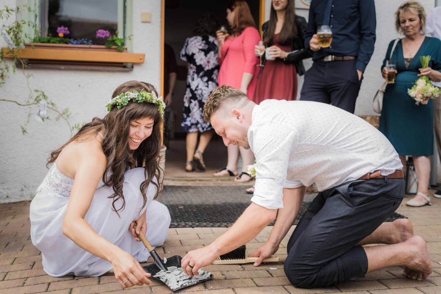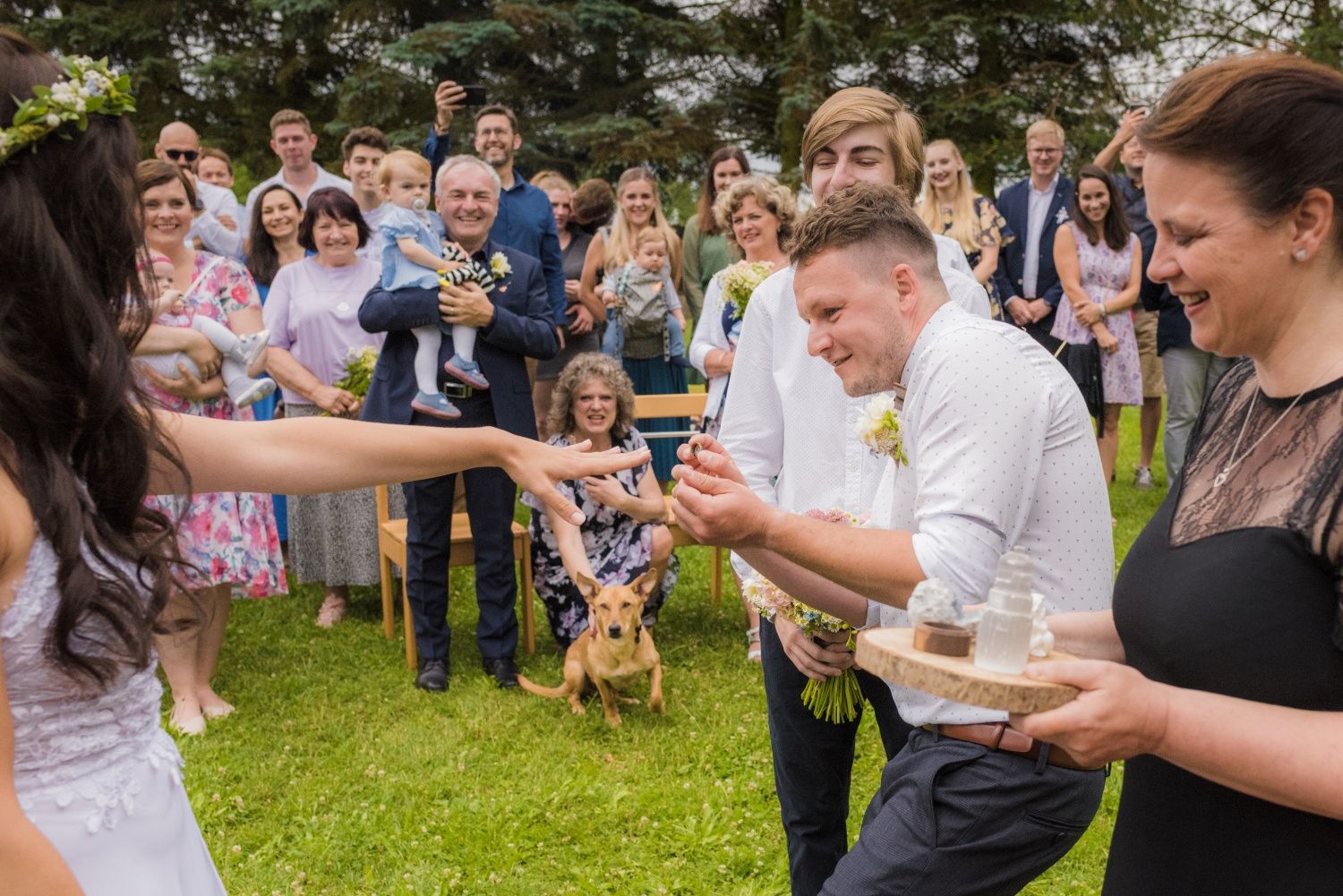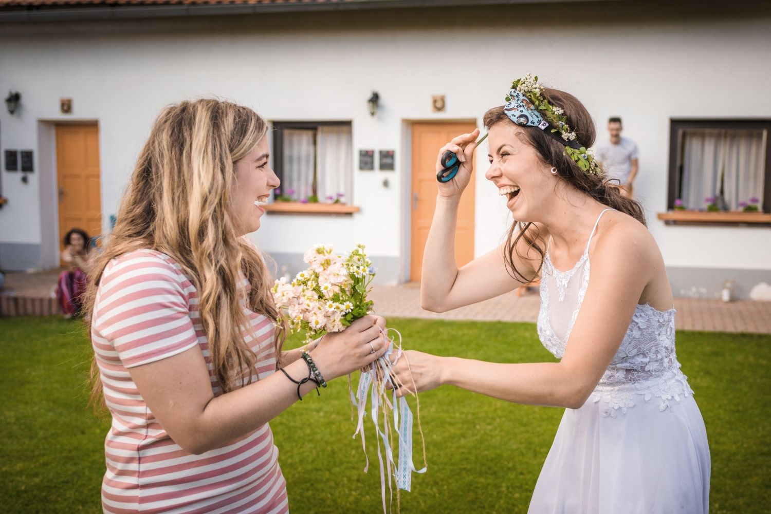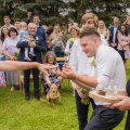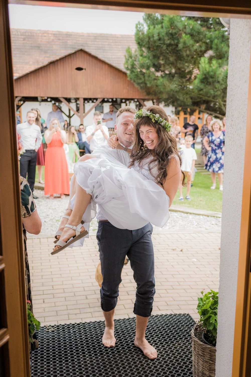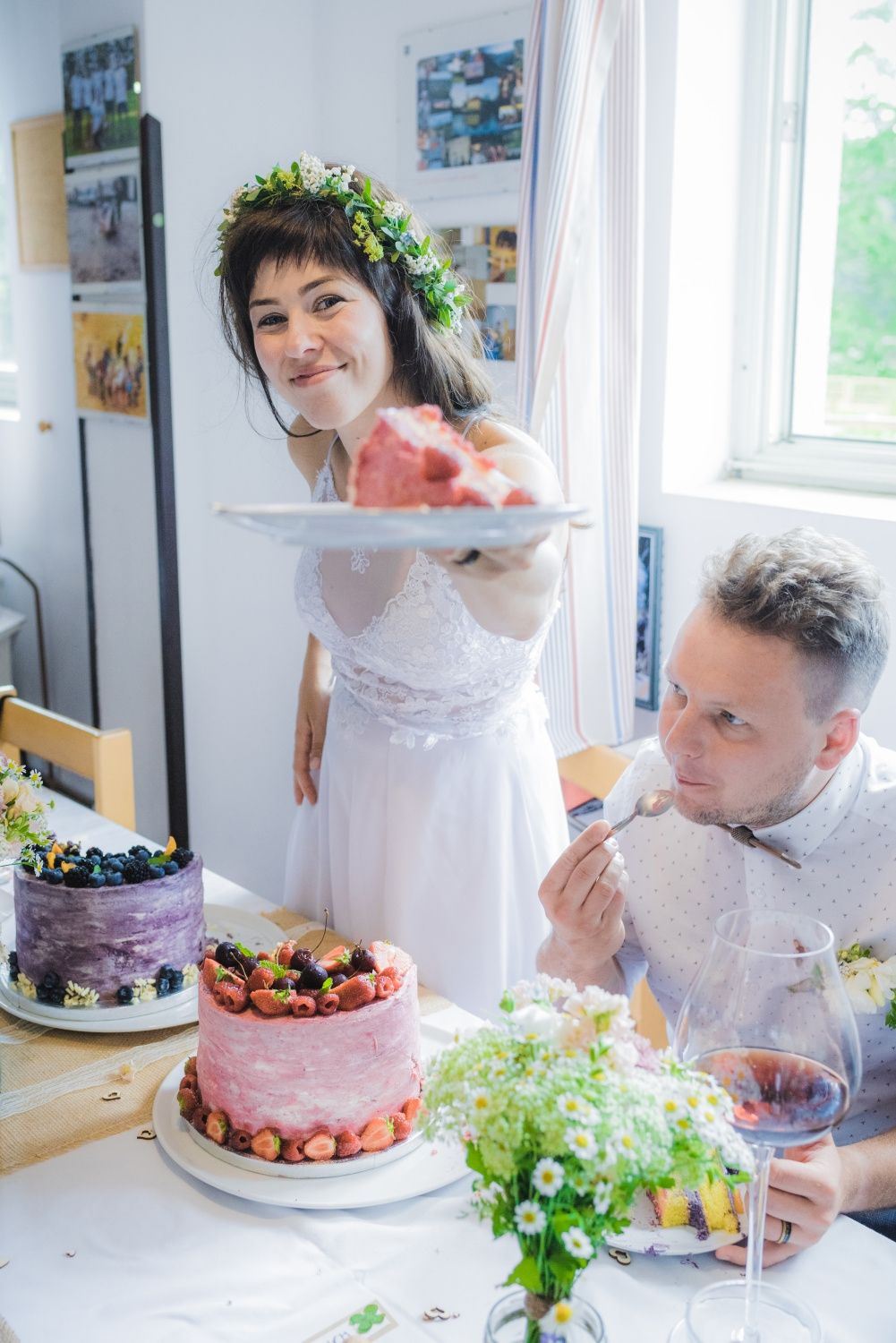 Někdo si potrpí na knedlíčkovou polévku podávanou děravou lžící, někdo musí krájet dort. A někdo se ráno pořádně protáhne, aby stihl civilní obřad, druidský obřad, všechny myslitelné soutěže a obyčeje, noční veselí a ranní koupání v rybníce, které z etických důvodů fotograf zaznamenal, ale nezveřejnil. Aneb „Svatba od kuropění do kuropění“.