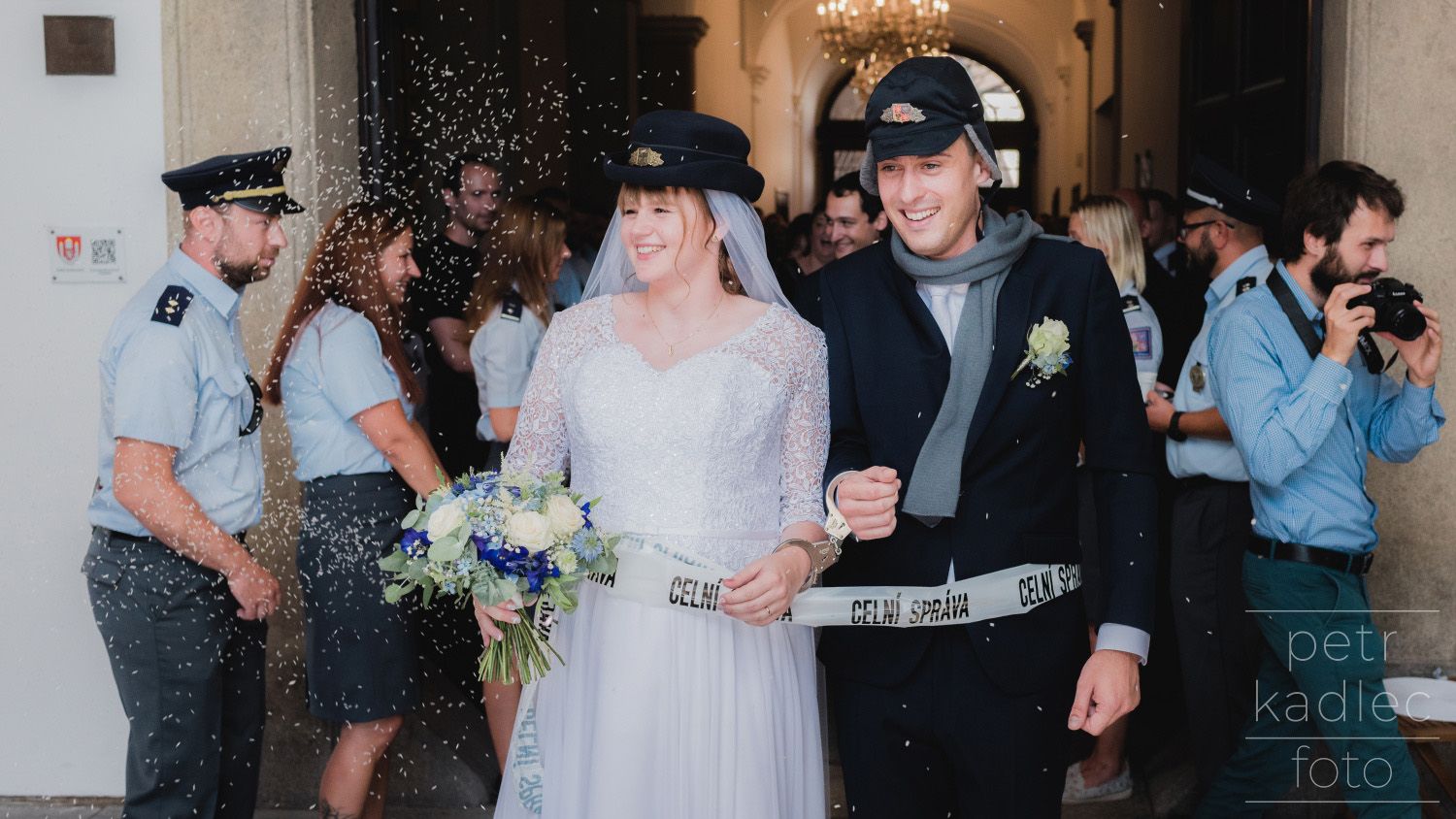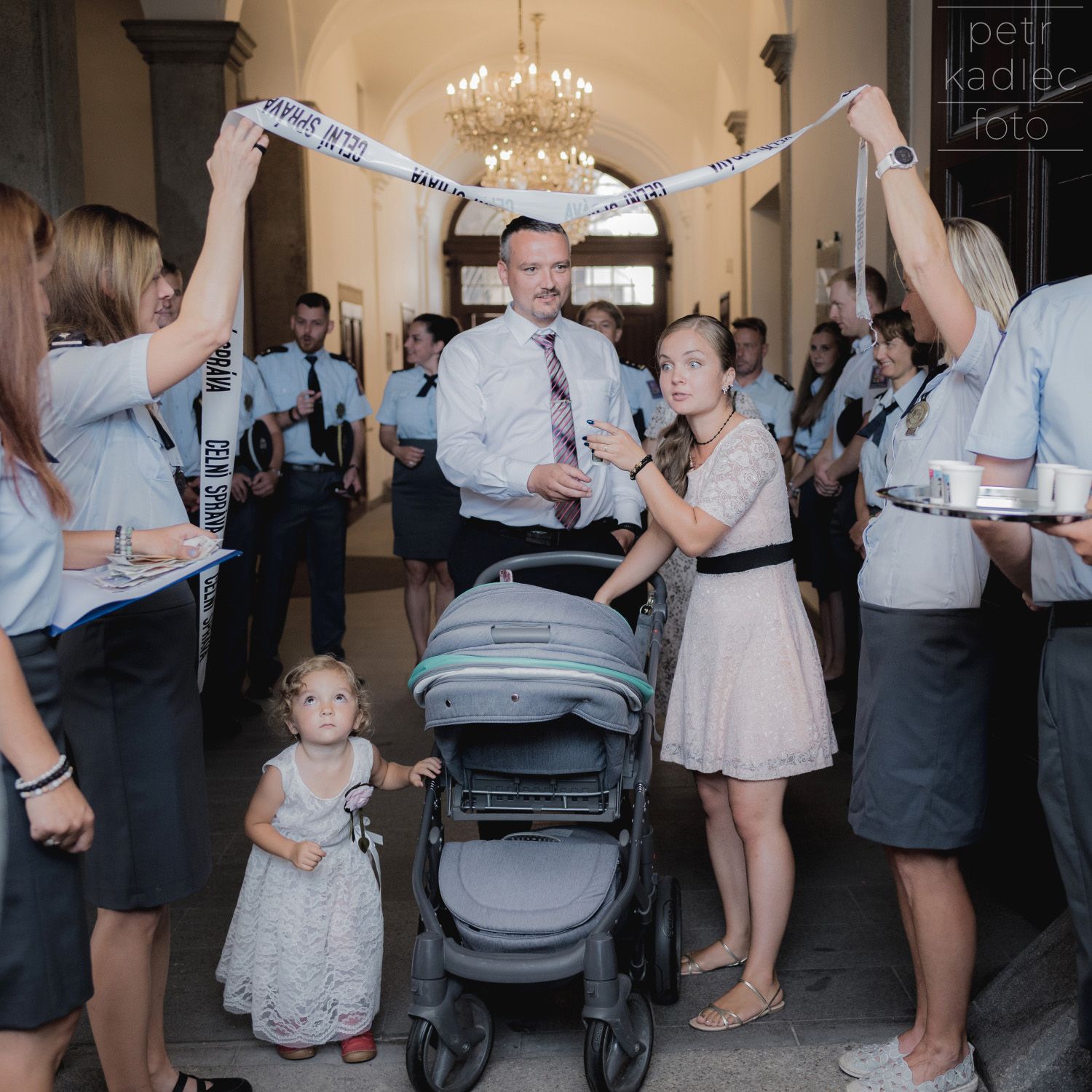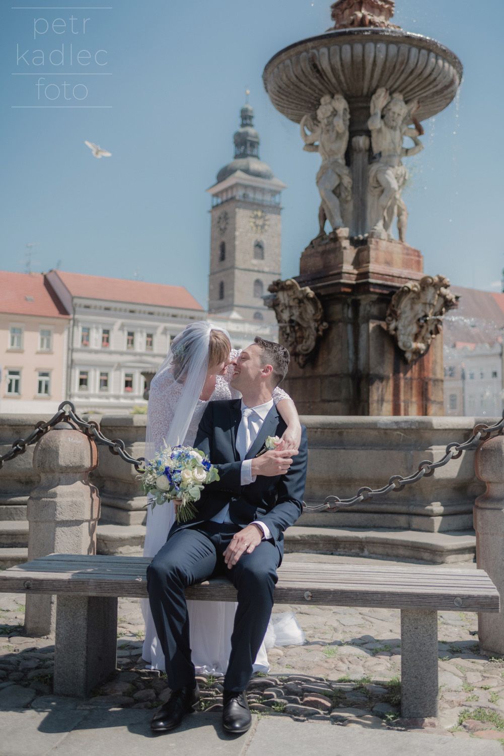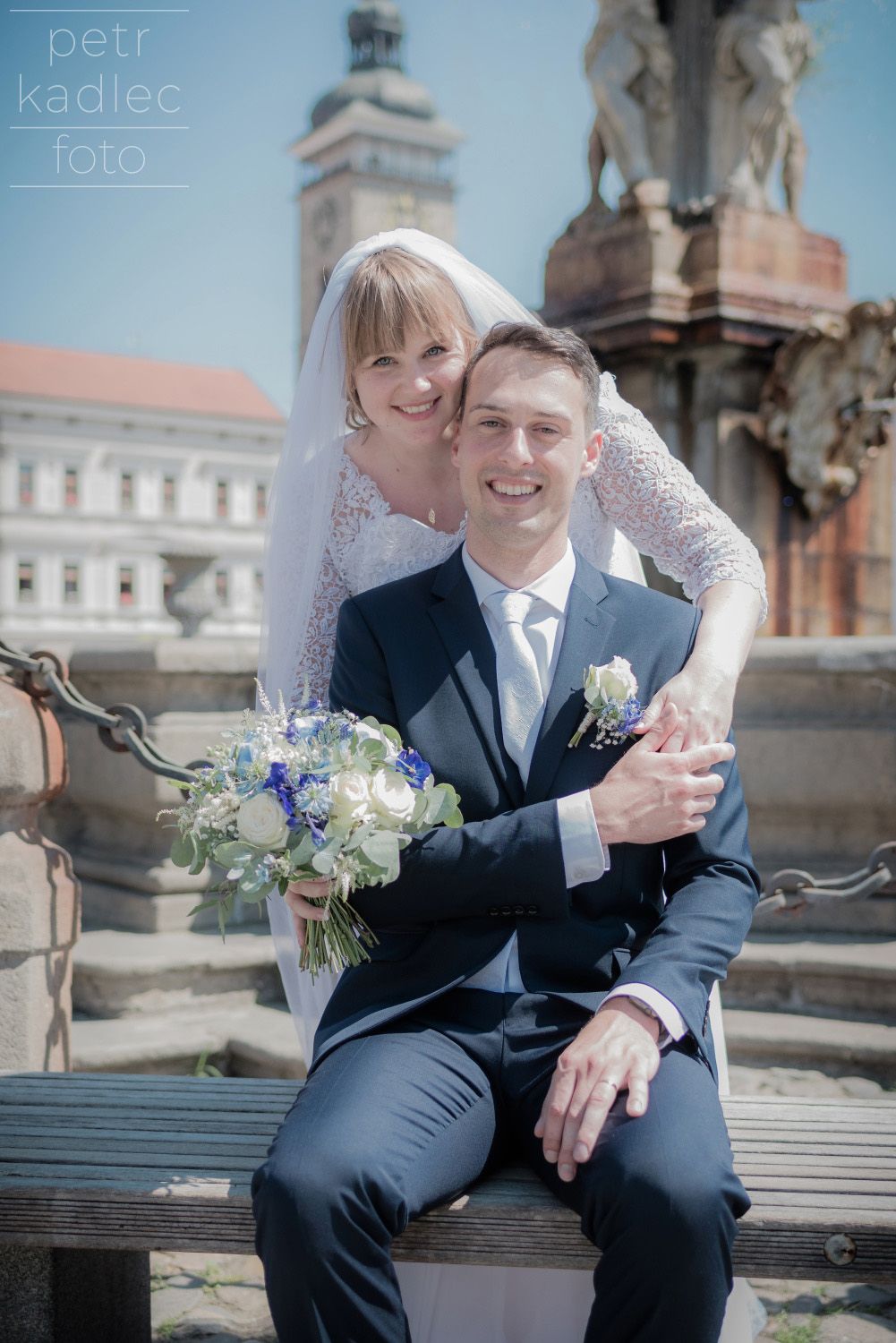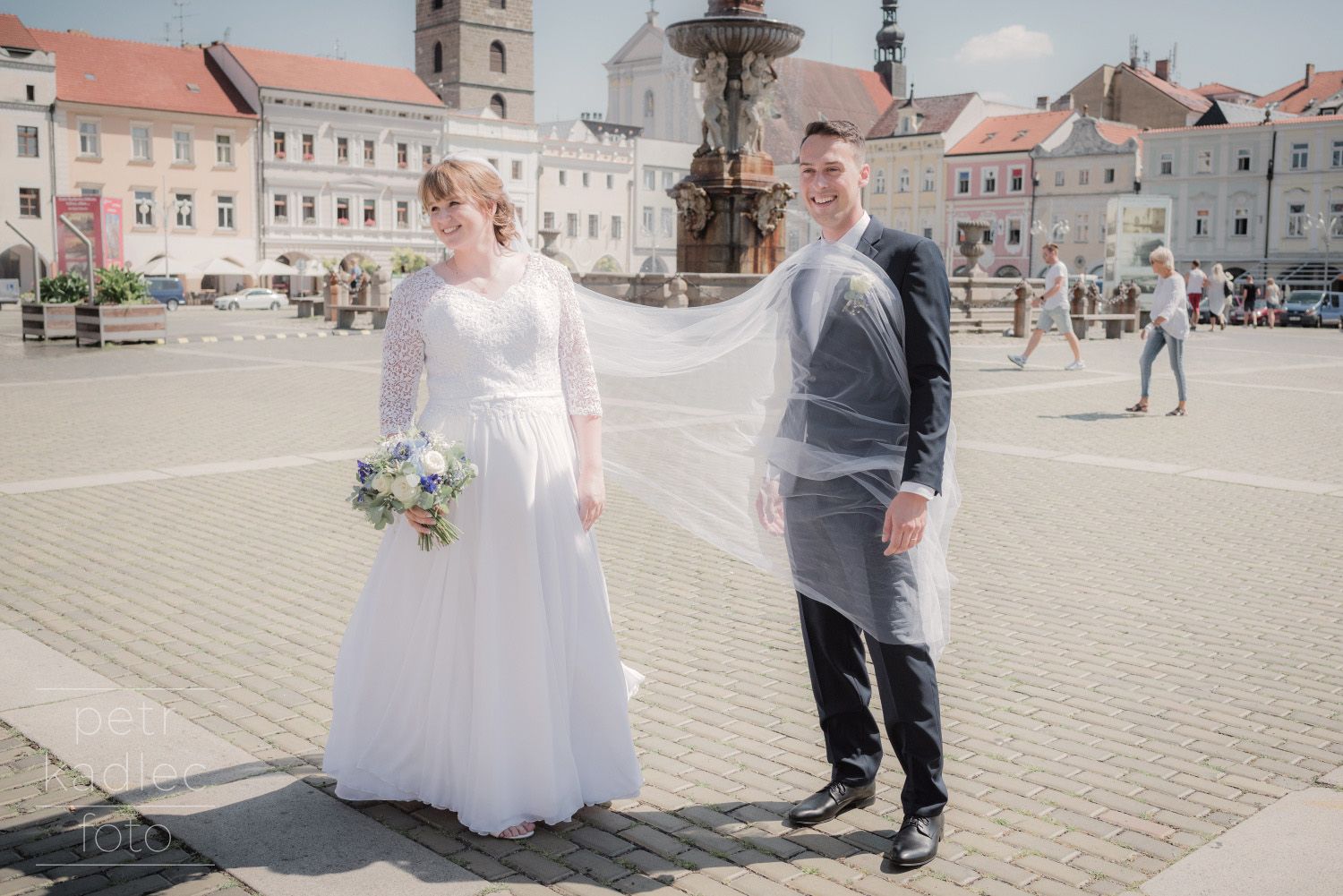 Ačkoli teploty odpovídaly spíše Sahaře, chrliče na budově radnice lapaly po dechu, tuhle dvojku (ve skutečnosti dvě a tři čtvrtiny), kterou dohromady svedla celnická uniforma, to před třeštěním u kašny nezastavilo. A protože celníci nejsou žádná ořezávátka, tak dokázali vyloudit úsměv i když jim krom pokynů fotografa pila krev celá jihočeská populace obtížného hmyzu.